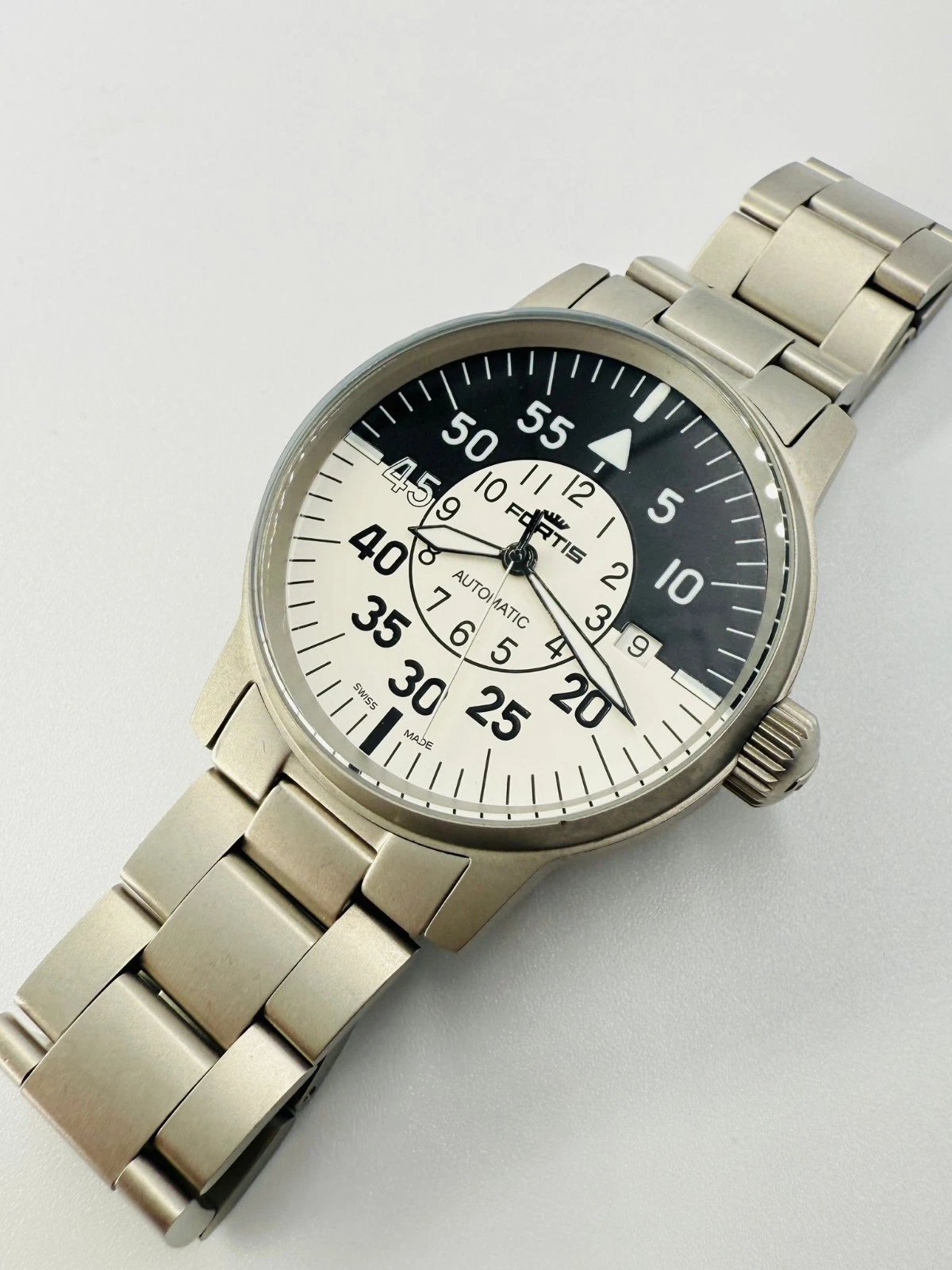 Fortis Flieger Automatic 25 Jewels Swiss Made Pilot Watch Black/White Dial Date