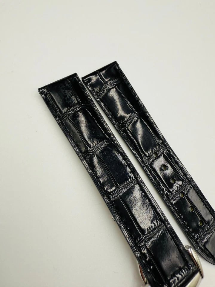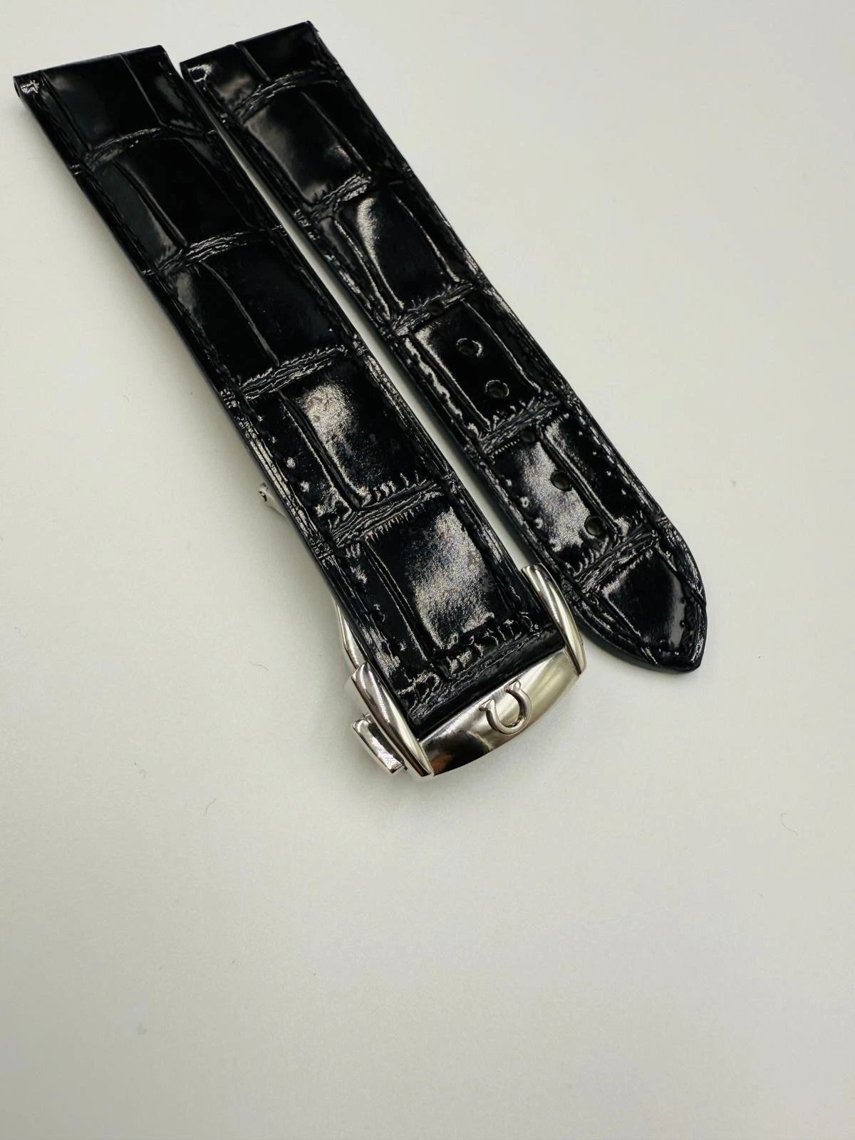 Omega Seamaster 22mm Black Leather watch strap With Stainless Steel Deploy Clasp