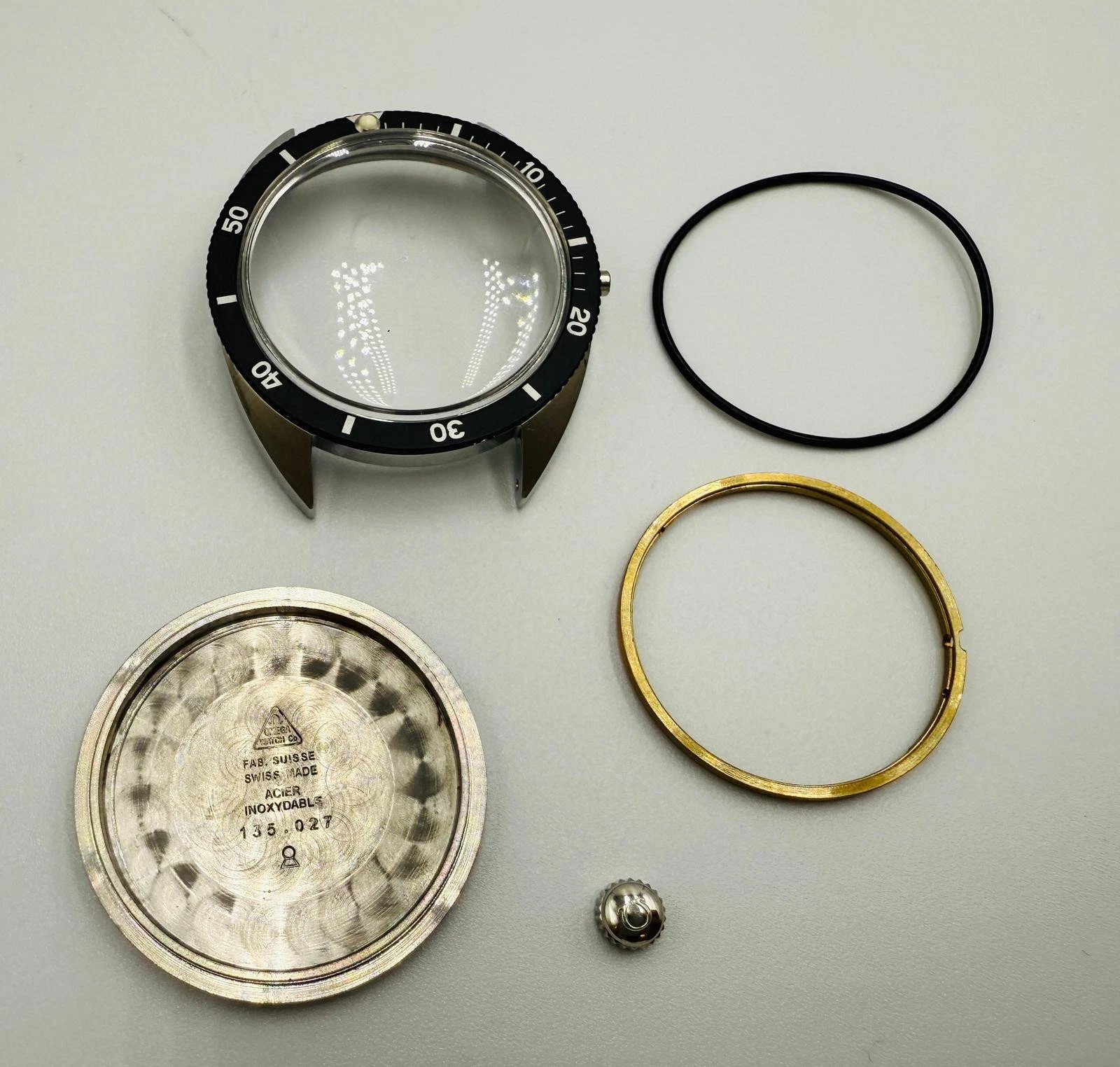CONTENTS----CASE+ROTATING BEZEL+CRYSTAL+GASKET+MOVT HOLDER+BACKCASE LID.,