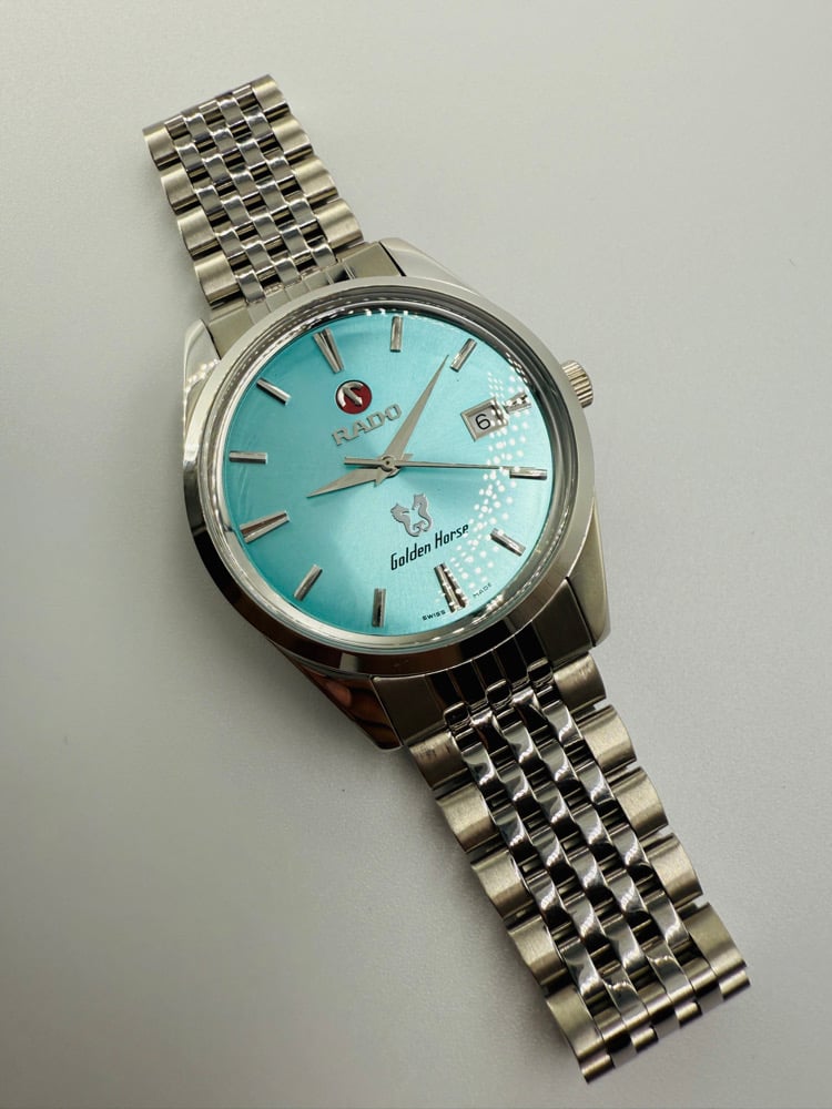 Rado Golden Horse Auto Men’s Watch Aqua Blue Dial Date Steel Bracelet Swiss Made