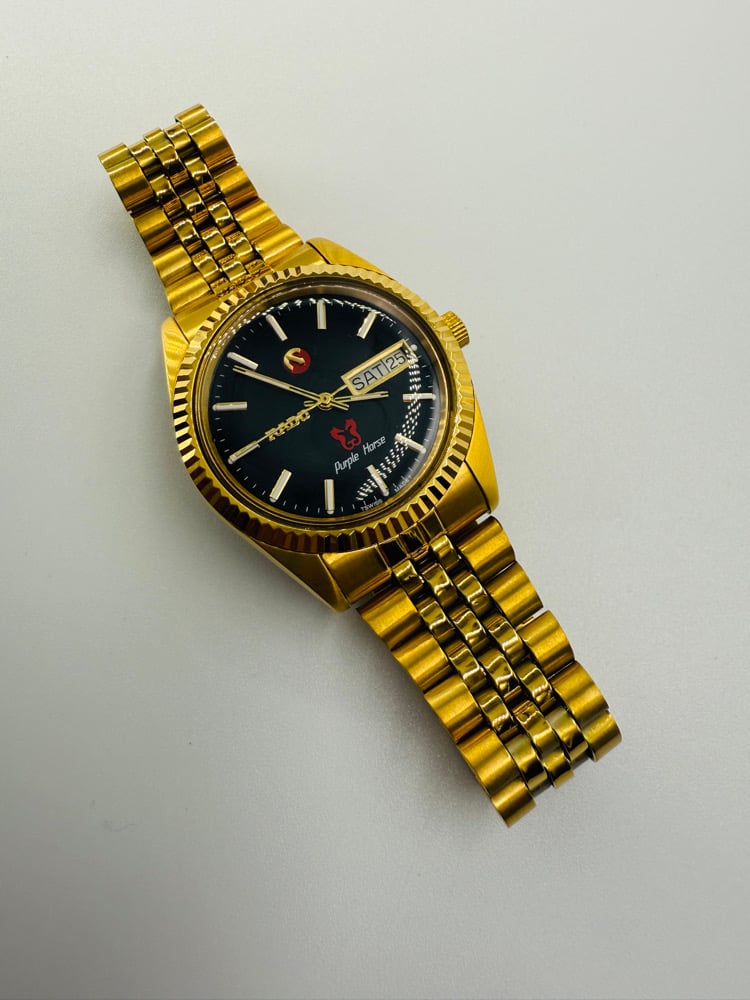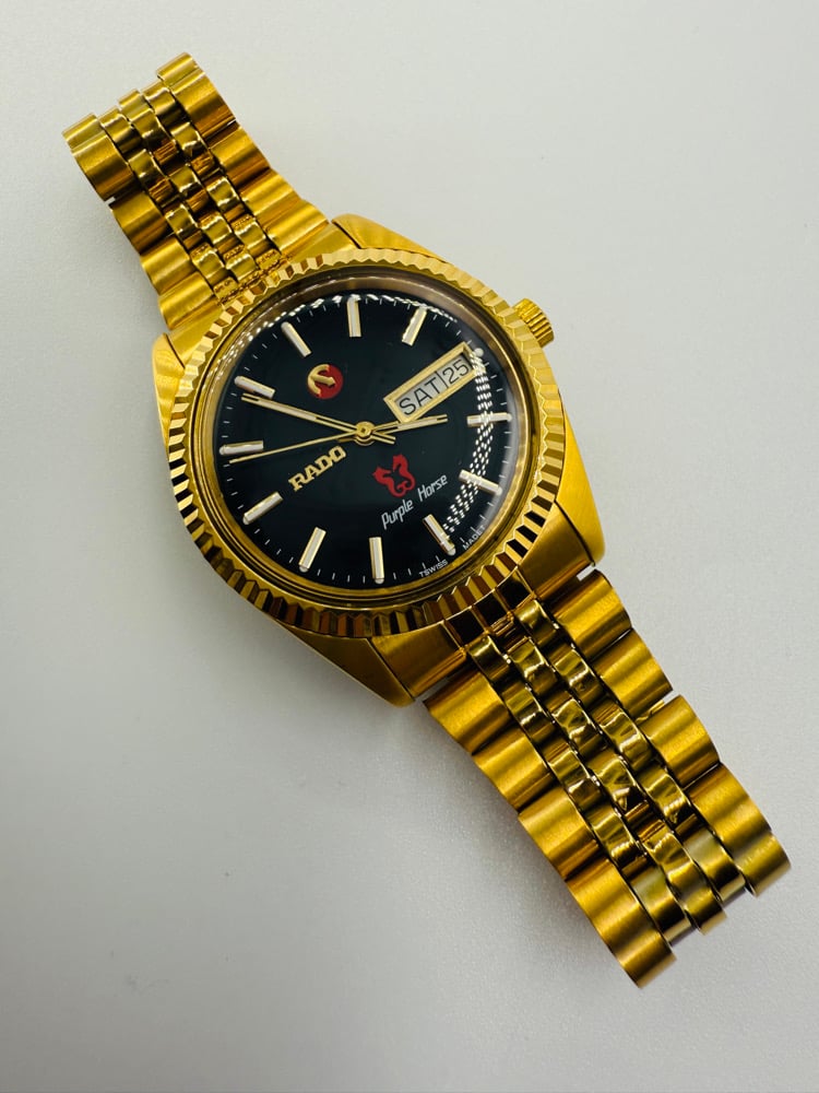 Rado Purple Horse Day Date Black Dial Gold Plated Automatic Men’s Watch