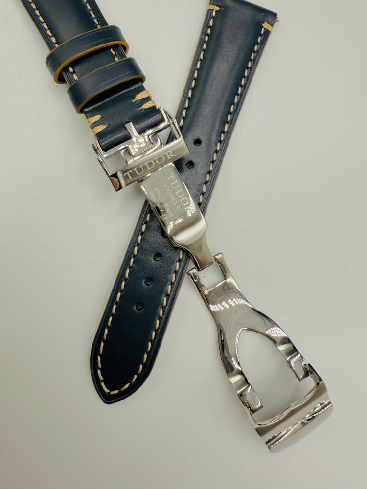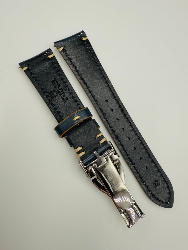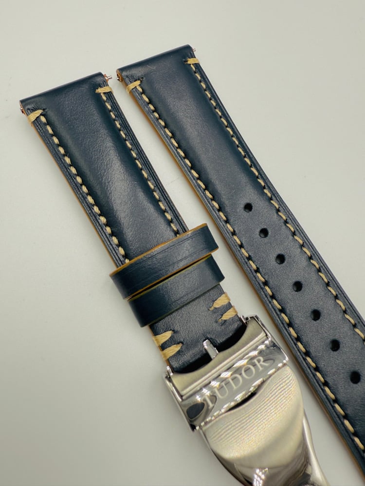 Tudor 22mm Navy Blue Leather Watch Band Strap For Tudor Bay Gmt Watches